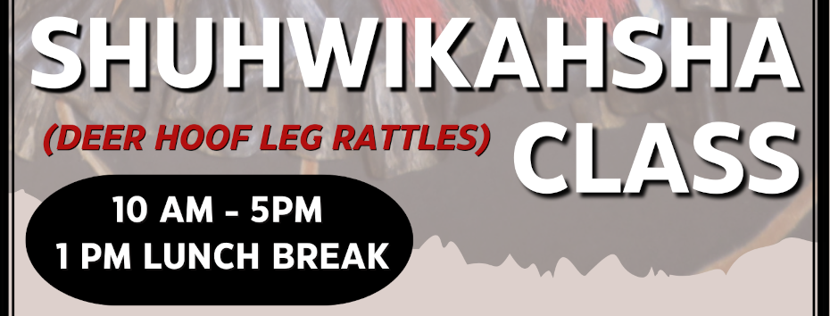 Join the Cultural Preservation Committee on Saturday, December 13 as we host a Shuhwikahsha (Dee Hoof Leg Rattles) Class taught by Jason Jones. Jason will be sharing the history and how men wore/danced with these instruments, followed by the opportunity to make your own!