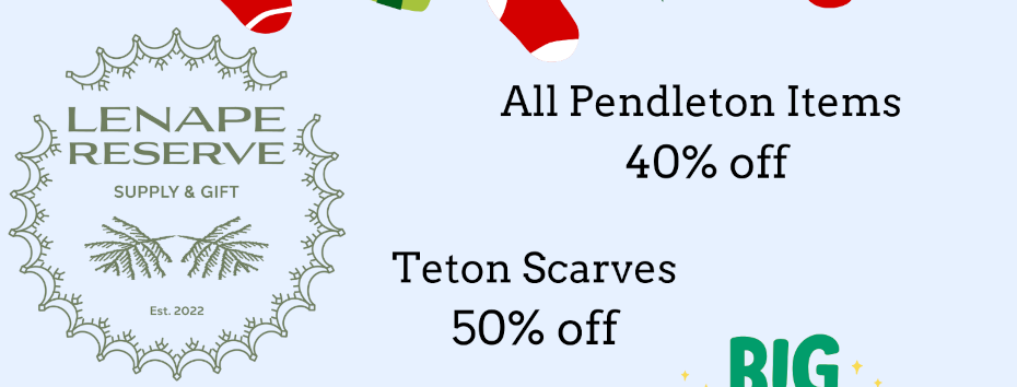 Lenape Reserve is having a holiday sale from now through December 31. Get 30% off Nu Trendz Scarves, 40% off all Pendleton items, and 50% off Teton Scarves. Shop online at https://lenapereserve.com or in person at 166 Barbara St. Bartlesville, OK 74006.