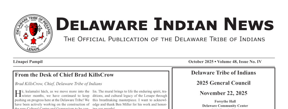 The October 2025 issue of the Delaware Indian News is now available online. To view the newspaper, click the link below: