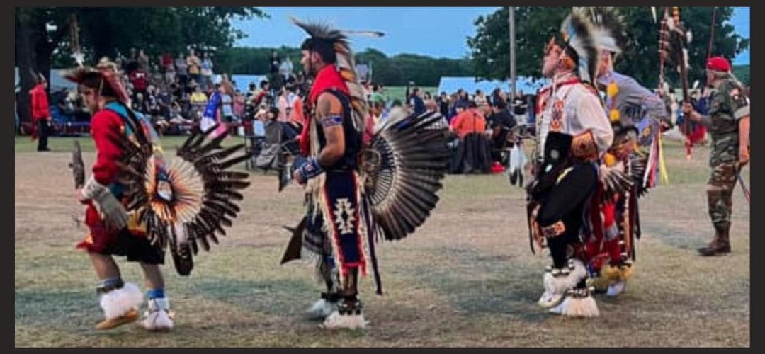 Frank Speck mentions that a Cayuga man from Canada made a trip to visit the Delaware while they were still in Kansas (prior to 1867), and he returned home with the Stirrup Dance. It has since been renamed “Chicken Dance” or “One-Side Male Dance” (Speck 1937:154).